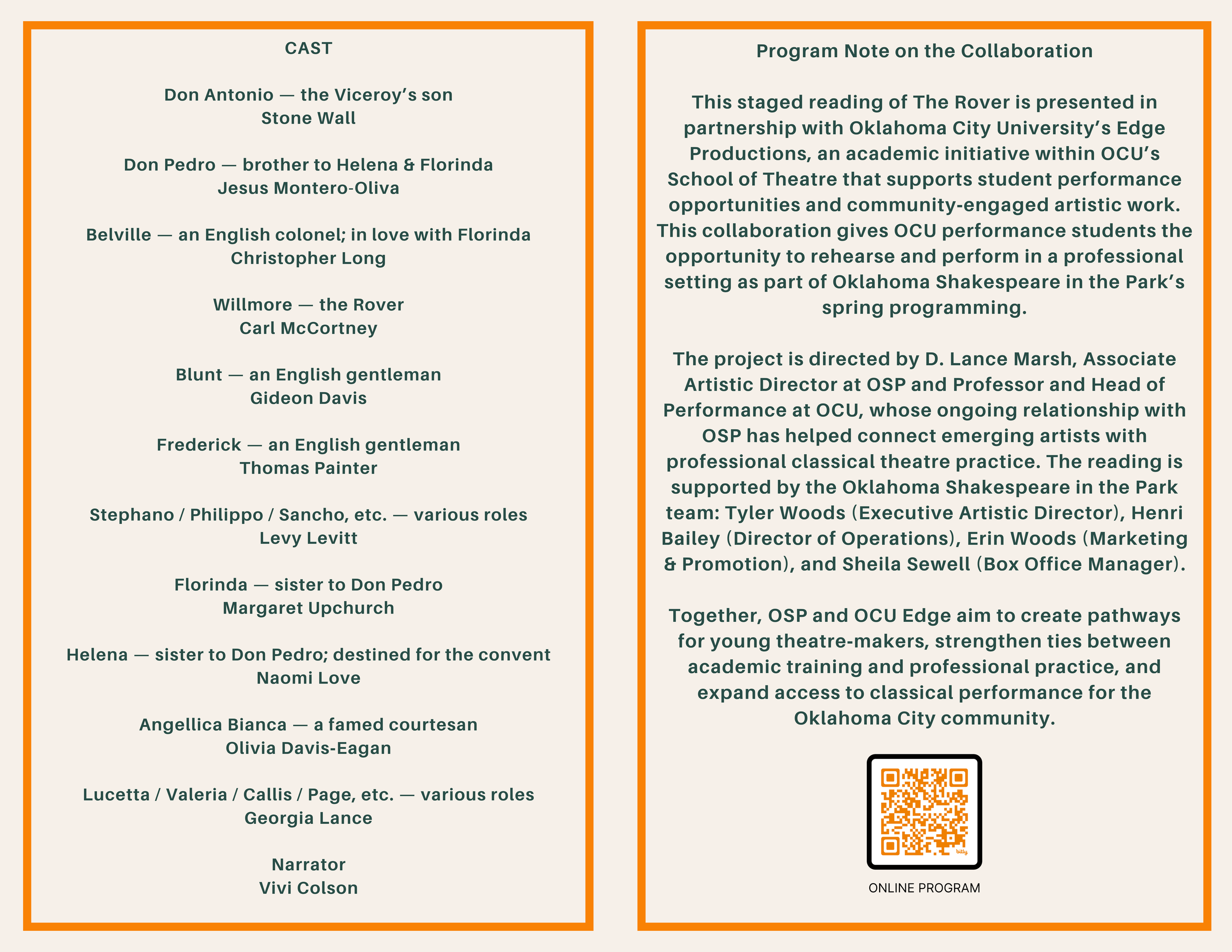 Oklahoma Shakespeare offers year-round programming from our home in the Paseo Arts District, featuring the 200-seat Shakespeare Gardens outdoor amphitheater, and the intimate 55-seat Black Box indoor theatre. Our outreach includes student matinees, young company camps, touring programs, and artist residencies.